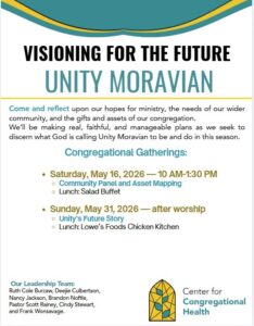 We’ll be making real, faithful, and manageable plans as we seek to discern what God is calling Unity Moravian to be and do in this season.